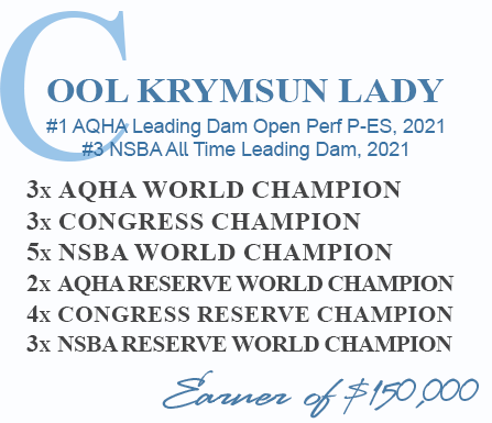 ![]() ![]() ![]() CLICK TO READ ARTICLE... ![]() ![]() ![]() ![]() ![]() SUDDENLY A COOL LADY BY RL BEST OF SUDDEN Congress Masters Champion, AQHA Reserve World Champion 2 Year Old Western Pleasure Reserve Congress Champion 3 Year Old Western Pleasure, NSBA Reserve World Champion 3 Year Old Western Pleasure, over $146,000 in earnings ![]() VS LADY IN RED BY VS CODE RED Congress Masters Champion, AQHA Reserve World Champion 2 Year Old Western Pleasure AQHA World Champion Am Western Pleasure, AQHA World Champion Am Western Riding AQHA Reserve World Champion Sr Western Pleasure, NSBA World Champion 3 Year Old Western Pleasure, over $119,000 in earnings ![]() WHOSE YOUR BAY BAE BY RL BEST OF SUDDEN AQHA High Point All Around Open Sr Horse, AQHA Champion, AQHA Performance Champion AQHA Superior All Around, NSBA Reserve World Champion Jr Western Riding over 1252 AQHA points and $56,000 in earnings ![]() TOO BLAZIN COOL BY BLAZING HOT AQHYA World Champion Hunter Under Saddle, Congress Champion Youth Hunter Under Saddle NSBA World Champion Youth Hunter Under Saddle, AQHA Amateur Performance Champion AQHA Youth Performance Champion, over 1729 AQHA Points and $35,000 in earnings ![]() COOL MADE MACHINE BY MACHINE MADE AQHA World Show All Around Amateur Reserve, Congress Champion L2 Jr Trail Congress Champion L1 Jr Trail, NSBA Reserve World Champion Performance Halter Gelding Non Pro Reserve Congress Champion Am Hunter Under Saddle AQHA Amateur Champion, 224 AQHA Points and over $25,000 in earnings ![]() ALTERNATIVE FACTS BY RL BEST OF SUDDEN NSBA Reserve World Champion Jr Trail, AQHA Champion, AQHA Amateur Champion 458 AQHA Points and over $24,000 in earnings ![]() COOLKRYMSUNLADYLIKE BY VS CODE RED NSBA World Champion Green Hunter Under Saddle, AQHA World Show Champion L1 Hunter Under Saddle Stakes, AQHA World Show Champion 3 Year Old Non Pro Hunter Under Saddle Stakes, Reserve Congress Champion L1 Hunter Under Saddle, Reserve Congress Champion 3 Year Old Ltd Hunter Under Saddle, over $23,000 in earnings ![]() COOL AIDY BY VS CODE RED NSBA World Champion 10k Ltd Horse Maturity Western Pleasure, Reserve Congress Champion L1 Am Western Pleasure over $23,000 in earnings ![]() SUDDENLY LADYLIKE BY RL BEST OF SUDDEN Congress Masters Western Pleasure 4th, AQHA World Show 2 Year Old Western Pleasure 4th NSBA BCF 3 Year Old Western Pleasure 3rd, over $21,000 in earnings ![]() COOL LADY LOPIN BY LAZY LOPER AQHA Champion, AQHA Reserve High Point Champion, 257 AQHA points over $11,000 in earnings ![]() VS LIFE SUPPORT BY VS CODE RED NSBA Reserve World Champion First Year Green Trail, AQHA World Show L1 Trail Stakes 4th ![]() VS LIFE FLIGHT BY VS CODE RED NSBA World Show Bronze Champion Youth Hunter Under Saddle AQHYA World Show 5th Hunter Under Saddle, AQHA Reserve High Point Champion |